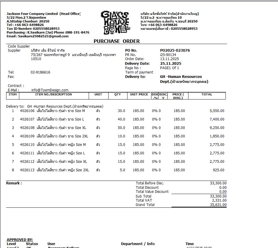 ใบเสนอราคานี้อนุมัติแล้ว โปรดระวังการแก้ไข