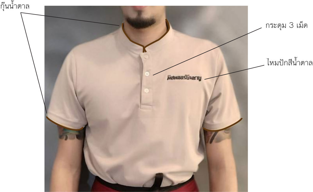 เสื้อคอจีน ไซซ์ M ชาย = 10, L ชาย = 15, XL หญิง = 5, 2XL หญิง = 5