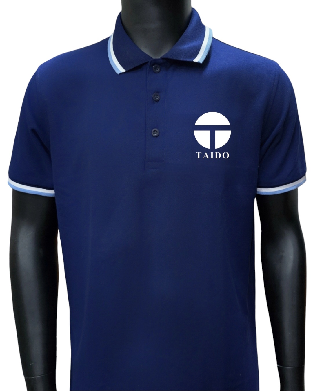 เสื้อโปโลสีกรมท่า ขลิบสีขาว-ฟ้าคราม 1102