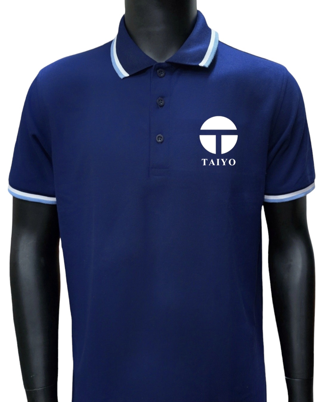 เสื้อโปโลสีกรมท่า ขลิบสีขาว-ฟ้าคราม